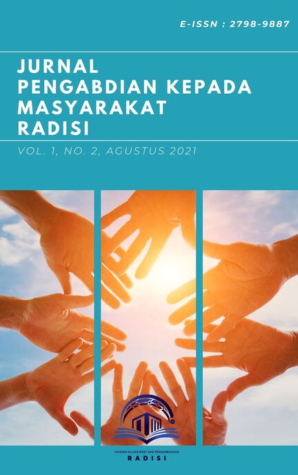 Jurnal Pengabdian Kepada Masyarakat Radisi adalah Open Journal System (OJS) bernomor ISSN (Online) 2798-9887 yang diterbitkan oleh Yayasan Kajian Riset Dan Pengembangan Radisi. Jurnal ini menjadi wadah publikasi bagi akademisi, praktisi, maupun masyarakat untuk mempublikasikan berbagai hasil refleksi konseptual dan gagasan orisinil dari kegiatan pengabdian kepada masyarakat yang belum pernah dipublikasikan sebelumnya. Jurnal ini menerapkan Double Blind Peer Review dan terbit tiga kali setahun (April, Agustus, Desember).