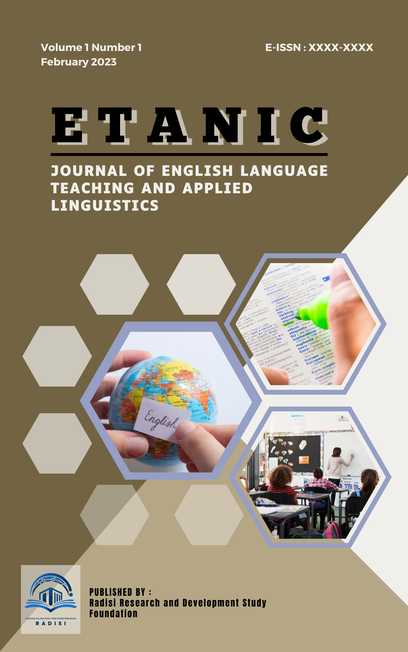 Etanic: Journal Of English Language Teaching And Applied Linguistics is an Open Journal System (OJS) with a peer review process method published by the Yayasan Kajian Riset dan Pengembangan Radisi. Etanic: Journal Of English Language Teaching And Applied Linguistics is dedicated to Academics, Researchers, and Society who will publish the results of theoretical and empirical studies as well as new thoughts/concepts that are still original in the field of teaching English and applied Lingustics. Etanic: Journal Of English Language Teaching And Applied Linguistics is published in 2 (two) editions a year, namely February (first edition) and August (second edition).